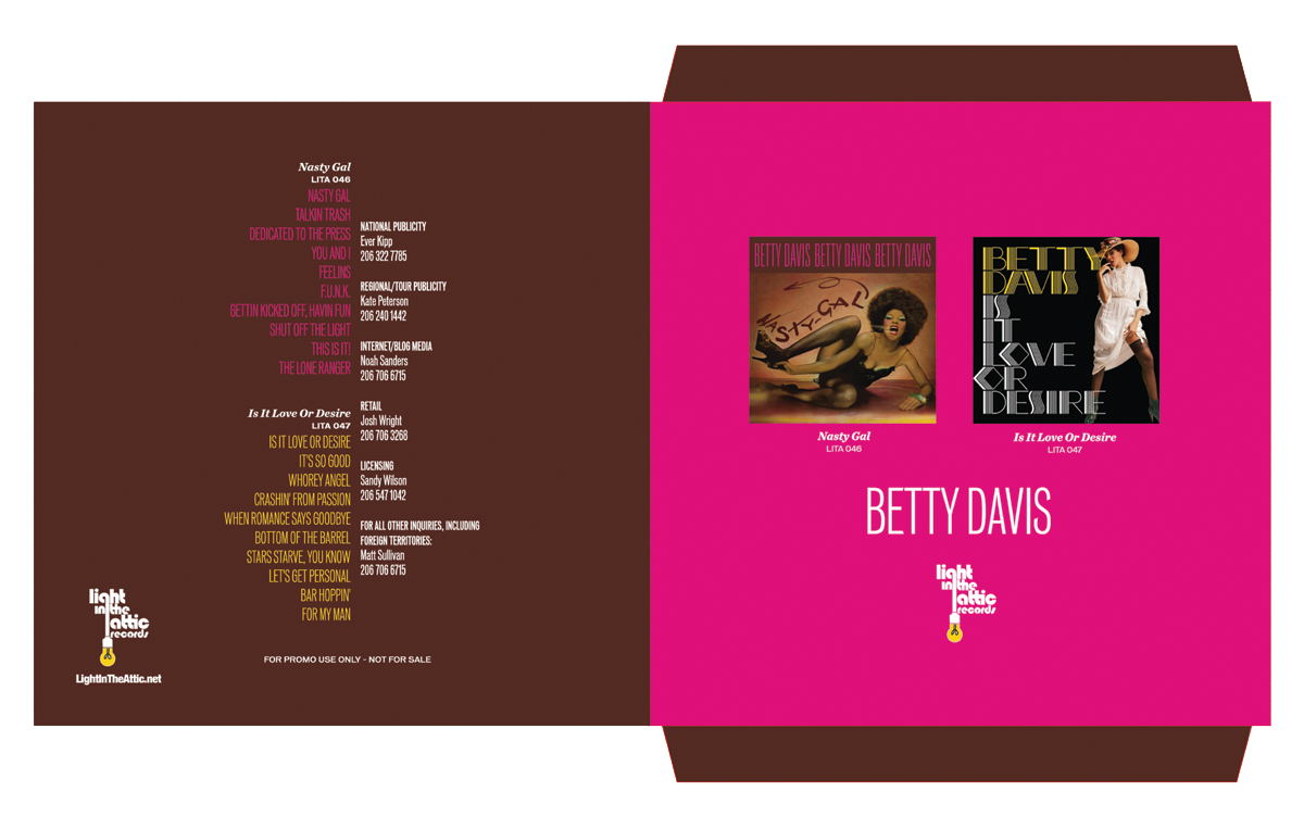 Multiple designs for Light In The Attic (based in Seattle, Los Angeles), and music on modern formats such as LP, CD, and digital.