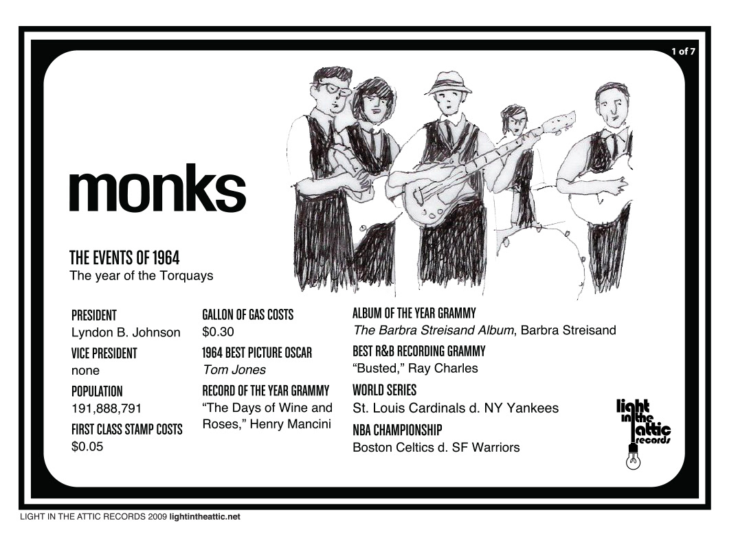 MONKS reissue series for Light In The Attic Records, Seattle, Washington, USA on CD and LP. Featuring foil stamp "Monks" covers. ©2009 Light In The Attic Records
